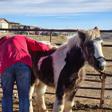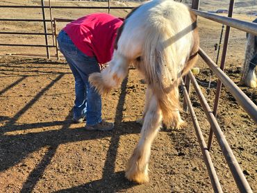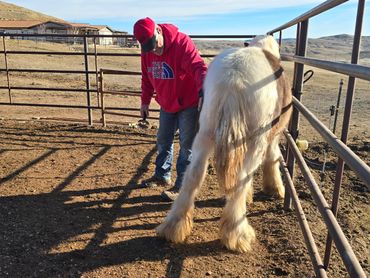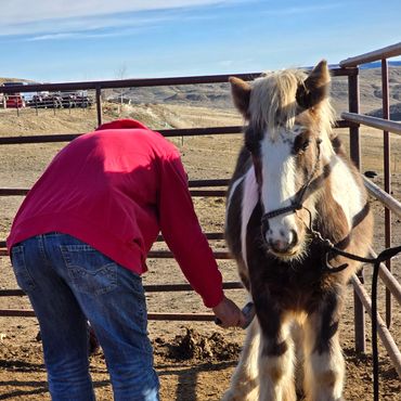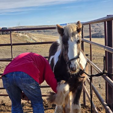 Cooley was born 4/9/2022, he is a wonderful, calm minded registered Gypsy Vanner. Cooley is very friendly, loves people and good around kids. He stands for the farrier nicely and has had his feet done several times. He loves attention of any kind and likes to know what you're up to! He loads great in the trailer and is quiet during travel. This gelding will be awesome at anything you want him to do! Should mature 15 hands. Cooley is registered with GVHS. Since this post, he has gone through the Buck Brannaman colt starting clinic 2024! See more about him below & his continued progress! He will make someone an awesome horse!